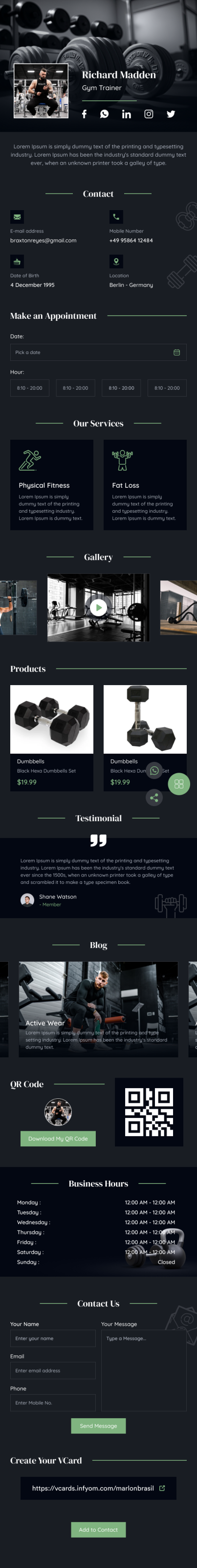 VCard Entrenador de Gimnasio